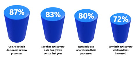 Kaplan began the discussion by sharing analysis data generated based on interviews that he conducted with leaders making eDiscovery decisions within the legal field. “There are lots of challenges here, but when I talk about communication data types, it’s just overwhelming. The feeling is just one, big sense of overwhelm,” Kaplan said.