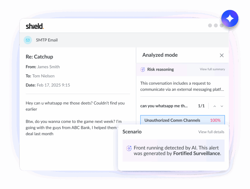 Shield’s AI enhancements help compliance teams uncover nuanced risk while minimizing false positives. Fortified Surveillance improves detection precision to 91.7% while reducing noise by 77.3%, enabling teams to identify meaningful risks faster with fewer distractions.